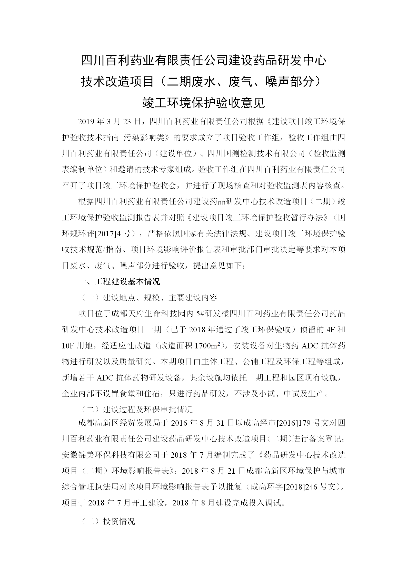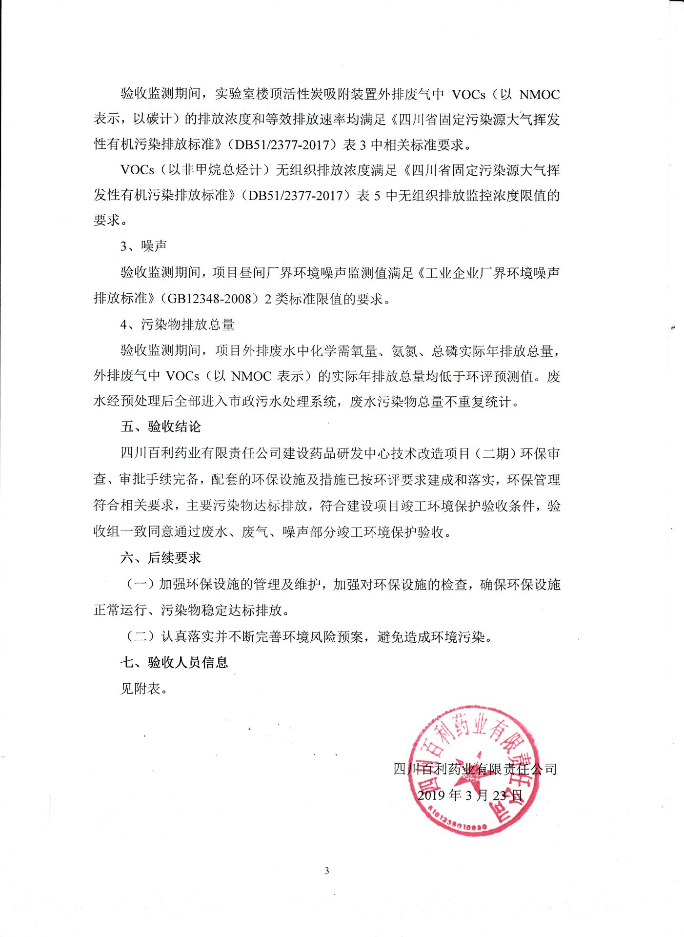 根据《国务院关于建设项目竣工环境保护管理条例的决定》以及环保部《建设项目竣工环境保护验收暂行办法》的公告(国环规环评[2017]4号)现将《四川澳门大阳城官网-大阳城(中国)有限责任公司药品研发中心技术改造项目(二期)竣工环保验收监测报告》及验收意见公示如下: